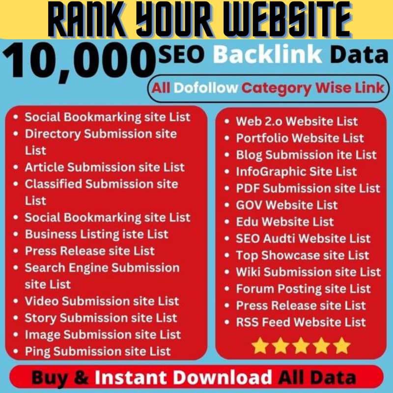 10000+ High Quality Dofollow Backlinks websites Data for SEO